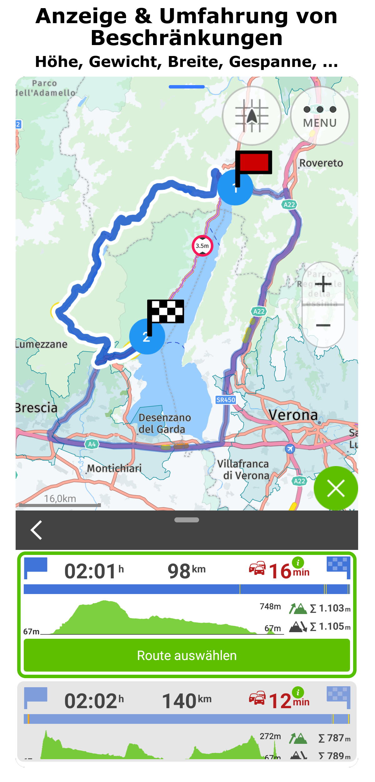 • Individueller Fahrzeugparameter (Höhe, Breite, Gewicht, Anhänger)