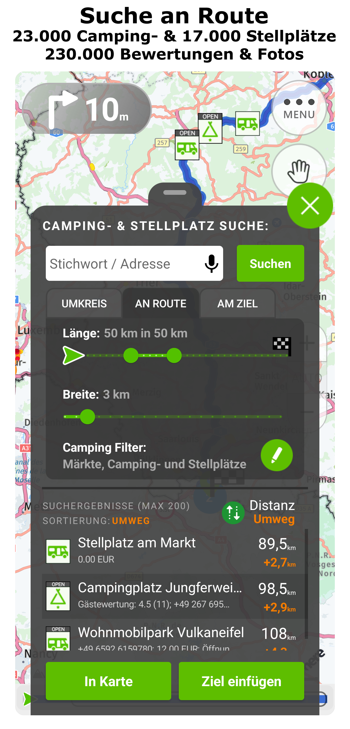 Die Camping Navi by POIbase erweitert die kostenlose Camping by POIbase um folgende Funktionen:
