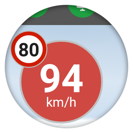 Visual and optionally acoustic signals when the maximal allowed speed is exceeded.