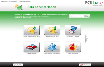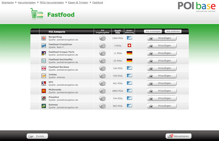 POIbase grants you free access to a huge selection of POIs from various categories to freely update your navigation system as individually needed - regardless of whether you want to take the locations of your favourite restaurant with you wherever you go or want to find the cheapest filling station nearby. POIbase only needs a few minutes to load all required points of interest to your navigation device.