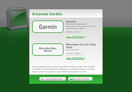 POIbase is compatible with most available mobile and permanently installed navigation systems. After starting the program, the software automatically recognizes the navigation device connected to the computer. Then you only have to select which POIs you want to transfer to your navigation device. POIbase now automatically installs the POIs to your sat nav.