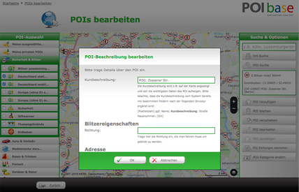 POIbase allows to edit existing POIs with just a few clicks. And it is just as easy to add your own POIs, e.g. the new baker around the corner or a newly installed speed camera. By sharing entries with other POIbase users, you can trust in a map with always up-to-date content, which you can contribute to at any time.